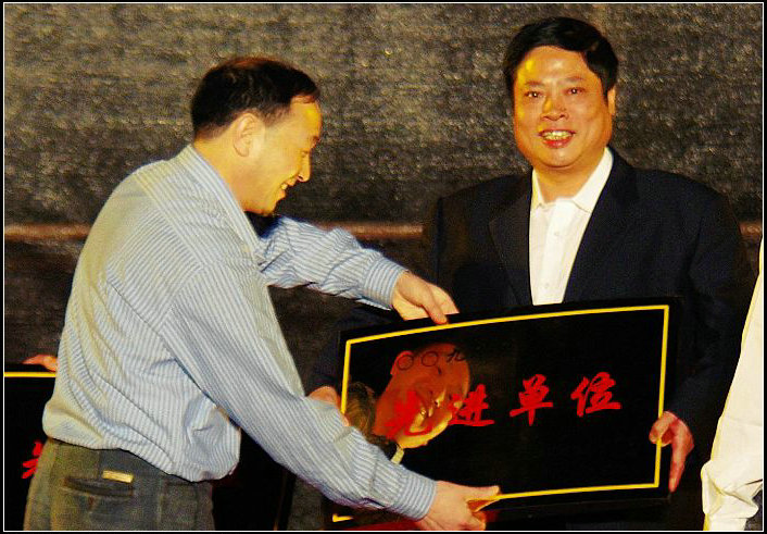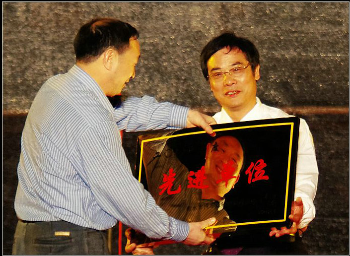 集團(tuán)公司總經(jīng)理虞大貴為演唱會(huì)二等獎(jiǎng)單位頒獎(jiǎng)