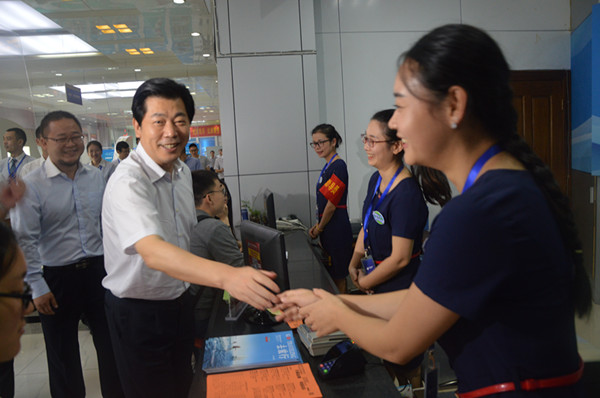 廖國(guó)勛與旅游集散中心一線員工一一握手