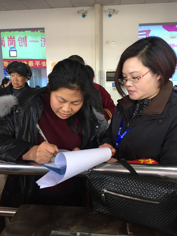 目前東站每天發(fā)送將近6000名旅客,這些服務(wù)工作全部由“流動(dòng)之家”服務(wù)班的14位姐妹花承擔(dān)。2016年12月,為了滿足兄弟單位的人員需求,本來人手嚴(yán)重不足的服務(wù)班,兩名組員被調(diào)到了新單位。到了2017年的1月,眼看春運(yùn)即將開始,又有兩名同事相繼辭職。由于事發(fā)突然,站里也不可能馬上配足人員。人手緊缺,對做好春運(yùn)服務(wù)工作是一大考驗(yàn)。面對困難,“流動(dòng)之家”服務(wù)班的姐妹們沒有氣餒,更沒有抱怨?!按蠹壹影褎?,先把春運(yùn)挺過去再說,再累也一定要讓旅客先順利回家”,這是服務(wù)班姐妹們在春運(yùn)期間最樸實(shí)的想法。最后,通過大家的相互協(xié)作,通過調(diào)整崗位配置,甚至放棄部分休息天等措施,硬是咬緊牙關(guān)堅(jiān)持了下來。在沒有請外援的情況下,使得高鐵配載點(diǎn)和東站服務(wù)臺的工作有條不紊地進(jìn)行,圓滿完成了春運(yùn)工作。