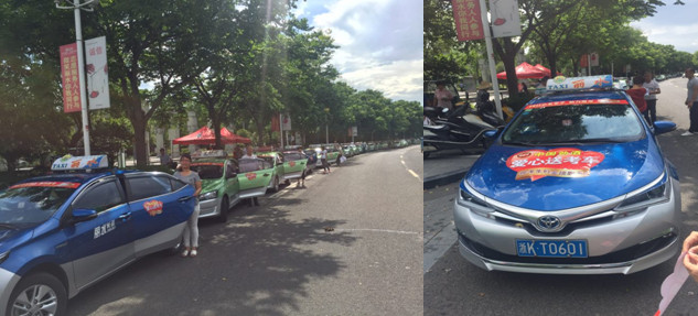 2017年度高考如火如荼,為服務(wù)好高考學(xué)子,長運公司陽光文明車隊共投入輛15出租車投入愛心送考服務(wù)。及時露天的高溫,15位駕駛員也是堅守自己的崗位,與高考學(xué)生一同進退,為他們爭取寶貴的時間。
