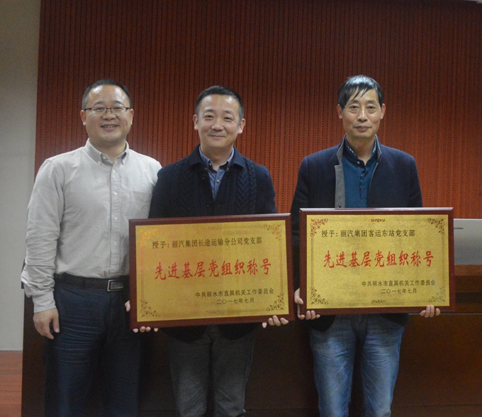 公司黨委書記葉茂與市直2016年度先進(jìn)基層黨組織長(zhǎng)運(yùn)分公司、客運(yùn)東站黨支部書記合影
