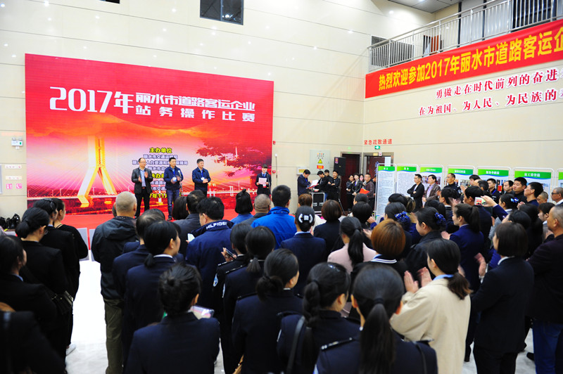 2017年11月11日,由麗水市道路運輸協(xié)會承辦的全市道路運輸客運企業(yè)站務(wù)操作比賽在龍泉客運中心舉行。本次以“提高道路客運行業(yè)服務(wù)質(zhì)量、提升道路客運企業(yè)形象,助推麗水大花園建設(shè)”為主題的大賽,邀請了麗水分別來自麗水九縣市的代表隊參賽。共有36名代表參賽,分別參加站售、行車獎項的角逐。麗水市交通運輸局副局長葉利東、麗水市總工會副主席鄺時忠,麗水市道路運輸協(xié)會會長薛和有及來自各縣市運輸企業(yè)的200余人觀摩,杭州長運集團(tuán)作為第三方專家擔(dān)任出題、閱卷及現(xiàn)場裁判工作。