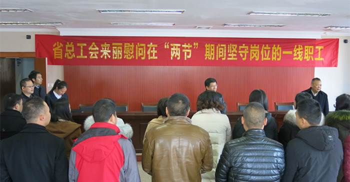 最后,省總工會(huì)董主席轉(zhuǎn)達(dá)省總對(duì)“兩節(jié)”期間堅(jiān)守崗位的一線職工的親切慰問和節(jié)日祝福。