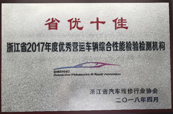 暨浙江省2017年度優(yōu)秀營運(yùn)車輛綜合性能檢驗(yàn)檢測機(jī)構(gòu)