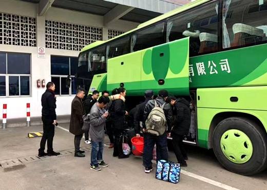 “我是這班車駕駛員,來,我?guī)湍!薄澳倪@件行李較大,我?guī)湍旁谶@個(gè)角落,您記一下,到時(shí)候您下車的時(shí)候直接到這找行李,如果拿不出來喊我們一聲就行”。由于返鄉(xiāng)的民工行李較多,班車行李艙容量有限,檢票上車時(shí)葉東洪總是站在行李艙旁接過每一位乘客的行李并小心地安放在行李艙內(nèi)?!奥闊┠懔藥煾怠薄皫煾堤兄x你了”“師傅你人真好”。面對(duì)乘客的道謝葉東洪總是微笑答道:“沒事沒事,應(yīng)該的,應(yīng)該的?!?br/>“旅客朋友們大家好,我是本次行程的駕駛員葉東洪,這是我的同事夏建飛,歡迎乘坐本次班車,路上期間如果有什么要求或者需要幫助隨時(shí)歡迎和我們提出,我們會(huì)竭誠(chéng)為您服務(wù)。”葉東洪檢查完每位乘客的安全帶后,隨著行車員的一聲指令,車輛緩緩駛出發(fā)車區(qū)踏上返鄉(xiāng)行程。
