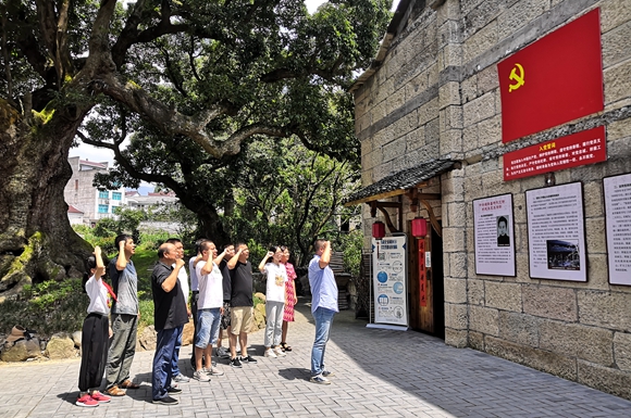 參觀古樹公園,有千年樹齡的苦櫧樹,其樹洞大到可容納五六人。這里就是1939年中共縉云縣委特別支部樹洞會議的遺址,正是這棵千年古樹珍藏了那段難忘的紅色記憶,聽著紅色故事,重溫著那段光輝的崢嶸歲月。