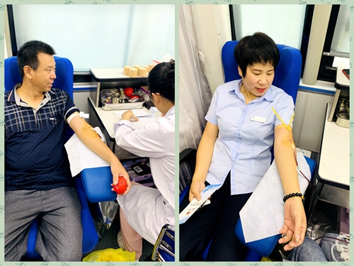 值得稱道的是集團公司湯蘭軍、周賢菊夫婦,夫妻倆長期堅持獻血,今天他們倆齊上陣,各獻了300毫升。