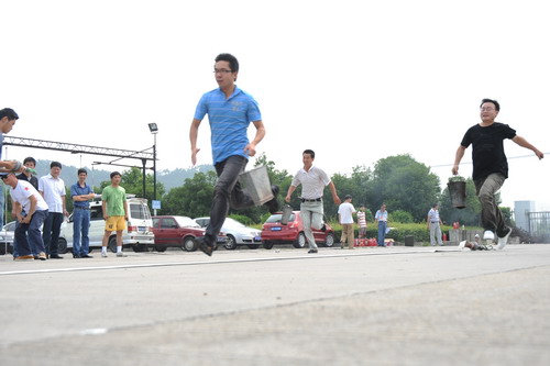 各分公司、子公司的11支義務(wù)消防隊參加了消防接力比賽。經(jīng)過角逐,集團本部、伊翔公司、客運東站分獲比賽前三名。