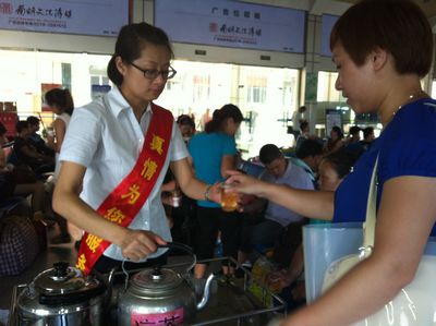 7月的麗水驕陽似火,連續(xù)的高溫已是酷熱難耐,而在客運西站候車廳里等車的旅客卻感受到了“流動之家”服務小推車帶來的沁人心脾的清涼。從7月5日開始,清涼解暑深受旅客喜愛的涼茶又開始出現(xiàn)在“流動之家”服務小推車上。據(jù)服務組組長周麗梅介紹,為旅客免費送涼茶活動已經(jīng)開展好多年了,由于深受旅客的喜愛,今年的送涼茶活動也將會持續(xù)整個夏天。