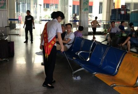 創(chuàng)衛(wèi)工作是當(dāng)前西站各項(xiàng)工作中的重中之重,客運(yùn)西站實(shí)行全站員工總動(dòng)員,要求每位員工做到視線內(nèi)我就是保潔員,在確保完成本職工作的同時(shí),全力以赴打好這場(chǎng)創(chuàng)衛(wèi)攻堅(jiān)戰(zhàn),實(shí)行“客運(yùn)工作與創(chuàng)衛(wèi)工作兩手抓,兩手都要硬?!?br/> 踏進(jìn)站前廣場(chǎng),你會(huì)看見保潔員拿著掃把、簸箕不停的巡視,及時(shí)的清理;買票時(shí),你會(huì)時(shí)不時(shí)看見保衛(wèi)稽查人員拿著長(zhǎng)柄鑷子在清理;候車時(shí),推著服務(wù)車的西站服務(wù)班工作人員在為旅客提供服務(wù)的同時(shí)也拿著長(zhǎng)柄鑷子清理地上的垃圾;上車時(shí),你還會(huì)在發(fā)車區(qū)看見檢票員跟調(diào)度員在發(fā)車間隙拿著長(zhǎng)柄鑷子及時(shí)清理正在上車的旅客丟下的垃圾。不遠(yuǎn)處的場(chǎng)地上,是拿著鑷子和垃圾袋的值班站長(zhǎng)的身影。