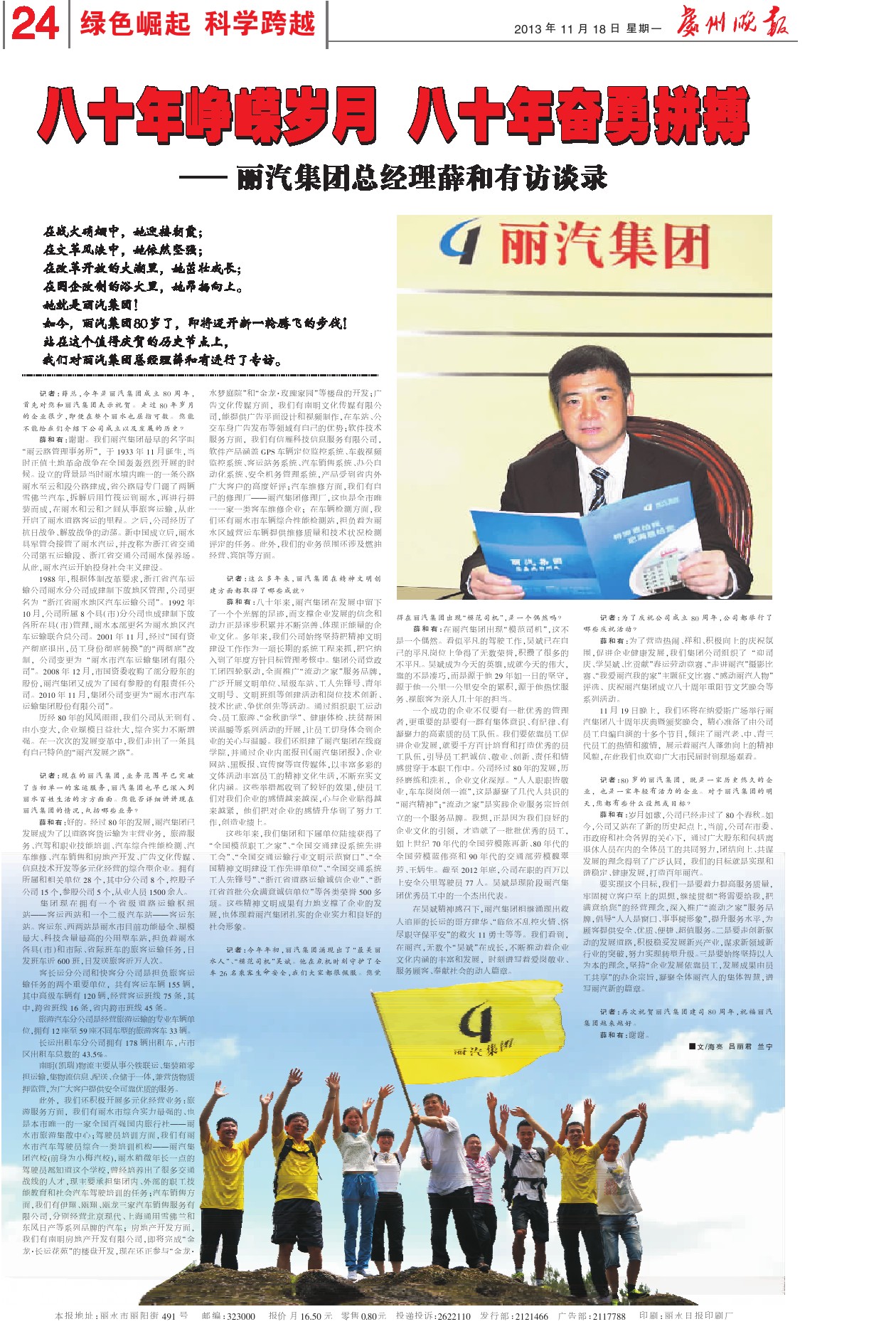 11月18日麗水日?qǐng)?bào)8版《八十年,成就麗汽輝煌》