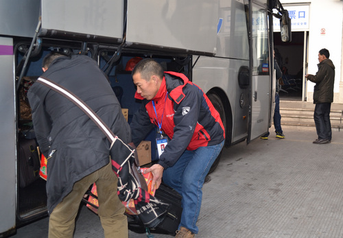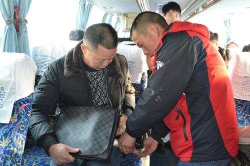 “加班到金華的駕駛員已經(jīng)報班!”1月17日13:00分,駕駛員曾國偉準(zhǔn)時來到車隊簽到,半個小時前,曾國偉還在親戚家喝喜酒,接到13:30要開加班車的任務(wù),他沒來的及等吃完飯就趕到了單位。同事問起來時,他幽默地說:“春運了,隨時都有加班任務(wù),哪敢隨意喝酒啊,這可是系著一車旅客的安全?!?br/>說話的工夫,他來到班車上試了試燈光,檢查了機油和水位,試發(fā)一下發(fā)動機,隨后又敲了敲輪胎,各項正常。開車前,他拿起了茶杯,卻只是稍稍抿了一小口,出車前,不敢多喝水,生怕影響行車,這也是他多年的習(xí)慣。隨著一聲哨響,曾國偉駕駛的班車也緩緩地駛出了客運西站。