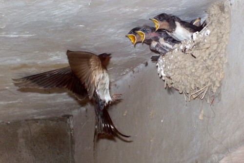 小時候我總喜歡觀察燕子。有時,我饒有興致地仰著頭,看它們喂養(yǎng)孩子。只要大燕子一出現(xiàn),它們的孩子全部從巢里齊刷刷地仰起腦袋,露出黃色小嘴巴,嗷嗷叫嚷。有時無聊,我趴在外婆家閣樓的稻草堆上,看屋檐外的一群燕子停在閣樓的邊沿,當(dāng)有一只燕子飛近時,燕子們都拍翅,叫喚著相迎。我看懂了它們的語言,它們在進(jìn)行友好的表示。是同類,盡管陌生,它們卻能友好相處,沒有排斥,沒有人類社會的互相傾軋。我想燕子與人類的相處是動物和人類和諧相處的典范,人類接受了燕子并把燕子當(dāng)作吉祥物供養(yǎng),這是幾千年來一直延續(xù)下來的。就連北京舉辦奧運會,五個福娃中也有一只展翅飛翔的燕子“妮妮”,其造型創(chuàng)意來自北京傳統(tǒng)的沙燕風(fēng)箏,寓意著妮妮把春天和喜悅帶給人們。