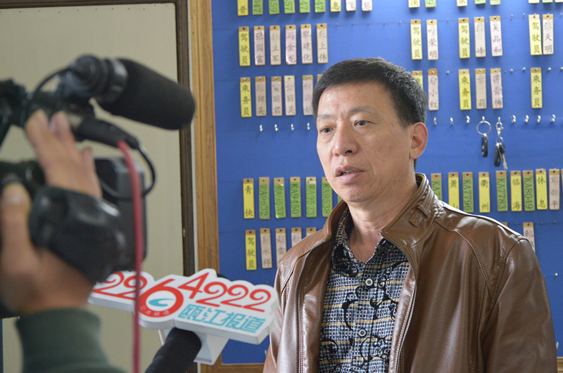 客長(zhǎng)運(yùn)分公司車隊(duì)長(zhǎng)樓群面對(duì)記者表達(dá)了他對(duì)章雙林的肯定(張國(guó)軍/攝)