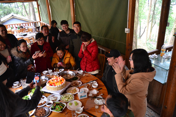 適逢大姐李霞萍生日,全體員工為大姐唱生日快樂歌,舉杯慶生。