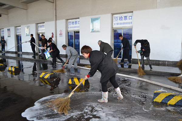 1月20日下午,東站經(jīng)理室?guī)ьI東站黨(團)員志愿者進行了站內(nèi)衛(wèi)生大掃除。在活動現(xiàn)場,大家干勁十足,分工合作,黨(團)員志愿者們充分發(fā)揚先鋒模范、不怕苦不怕臟的精神,對發(fā)車位以及站場地面進行了徹底的清理,經(jīng)過大家的共同努力,發(fā)車位煥然一新,地面整潔干凈。