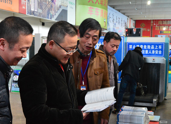 葉茂仔細(xì)翻看東站春運宣傳手冊