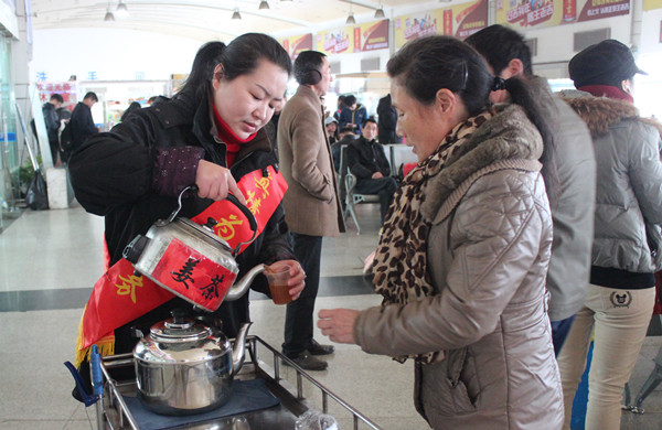 2月6日一大早,客運(yùn)西站“流動(dòng)之家”服務(wù)班的姐們?cè)缭缇蜏?zhǔn)備好一大壺?zé)狎v騰的姜茶,免費(fèi)送到候車的旅客手上,希望熱騰騰的姜茶能驅(qū)散早晚的寒意,讓旅客回家的旅程變的更加溫暖。