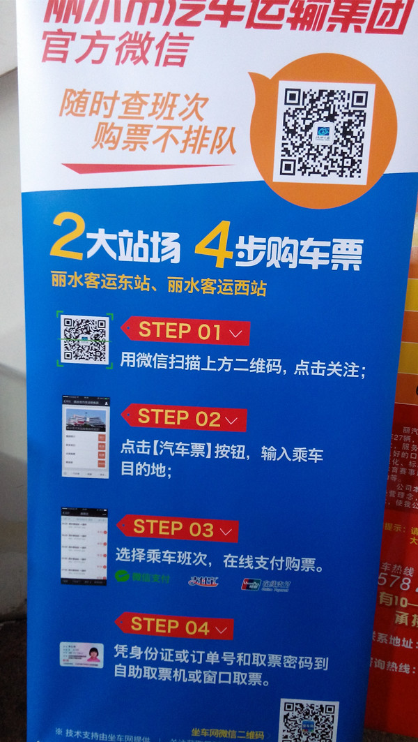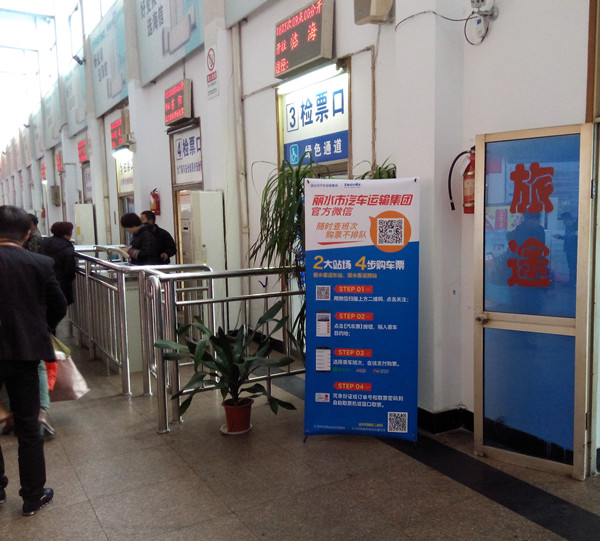 為方便旅客出行,強化服務質量,麗汽集團在開通網(wǎng)上售票、電話售票后,今天上午又推出服務新舉措--開通微信售票。廣大旅客只要掃描關注麗汽集團的微信號、點擊“汽車票”按鈕輸入乘車目的地、選在所乘的班車并在線支付,購票成功后旅客就可以憑身份證或訂單號和取票密碼到你購票時選擇的乘車站(東站、西站)的自助取票機或窗口打印出相應車票,即可憑票乘車。