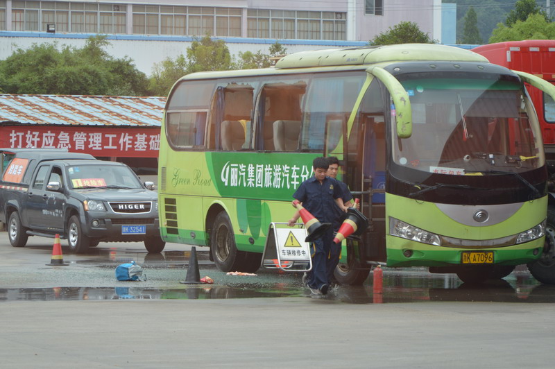 為了全面落實(shí)安全生產(chǎn)責(zé)任,檢驗(yàn)評(píng)估麗水市突發(fā)事件應(yīng)急救援預(yù)案和應(yīng)急救援體系的適應(yīng)性、有效性,最大限度地減少各類突發(fā)事件的損失和負(fù)面影響,6月10日下午,麗水市交通運(yùn)輸局聯(lián)合市道路運(yùn)輸管理局和麗汽集團(tuán)在客運(yùn)西站組織開展了突發(fā)事件應(yīng)急救援演練。此次應(yīng)急救援演練共分2個(gè)科目,分別為:科目一交通事故(客車碰撞后起火燃燒)應(yīng)急處置和科目二“三防”應(yīng)急救援車輛調(diào)集演練。文首即為突發(fā)事件應(yīng)急救援演練中交通事故應(yīng)急處置中的一個(gè)場(chǎng)景,此次演練的另一個(gè)科目模擬市交通運(yùn)輸局緊急調(diào)用麗汽集團(tuán)應(yīng)急搶險(xiǎn)運(yùn)力展開。演練中,麗汽集團(tuán)在接到市交通運(yùn)輸局應(yīng)急搶險(xiǎn)指令后,迅速啟動(dòng)了應(yīng)急預(yù)案,并立即調(diào)派各單位應(yīng)急搶險(xiǎn)車輛在規(guī)定時(shí)間內(nèi)到達(dá)指定區(qū)域待命。