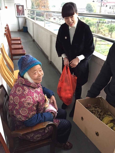 當(dāng)我們的團員為老人捧上水果時, 老人們甚至微笑著流下感動的淚水,看著老人們眼含淚花的樣子,我們的內(nèi)心有股莫名的心酸,也為自己參加今天的活動而感到激動和自豪。