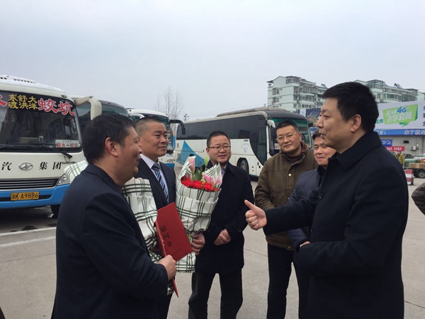 在長途運輸分公司,朱晨副書記和吳斌、章雙林一一握手,并送上了鮮花和節(jié)日慰問金,在轉(zhuǎn)達了市委、市政府的關(guān)懷和慰問后,還豎起大拇指稱贊吳斌、章雙林倆是好樣的,希望他們不斷努力,為企業(yè)、為“兩美”麗水建設(shè)做出更大貢獻。