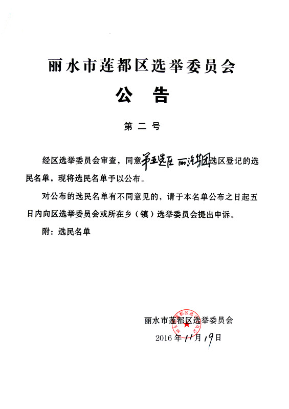 麗水市蓮都區(qū)選舉委員會公告(第三號)