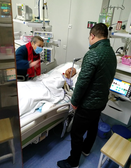 在溫州中醫(yī)院監(jiān)護(hù)室,一直處于半昏迷狀態(tài)的董周英當(dāng)依稀聽知公司黨委書記、董事長前來看望他時,興奮地睜開了雙眼,流露著滿眼喜悅。葉茂輕輕握著董周英的手,衷心希望董老能提振信心,勇敢的邁過眼前這道坎。