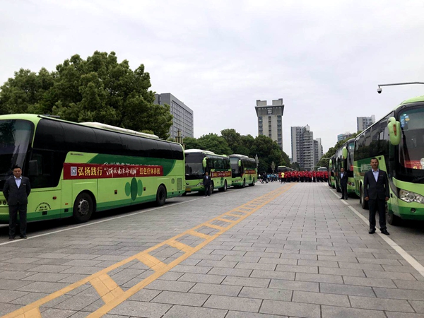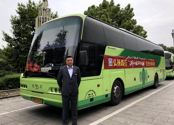 4月19日早上,在市政府南門廣場,麗汽集團旅游汽車分公司16輛綠色豪華大巴齊刷刷地排列著,16位駕駛員統(tǒng)一著裝,整齊劃一地站在車門迎候游客。這是2019年麗水市弘揚踐行“浙西南革命精神”系列活動啟動儀式暨勞模、一線(優(yōu)秀)職工紅色療休養(yǎng)活動發(fā)團儀式的現(xiàn)場。綠色大巴與著紅色服裝的先進(jìn)相互映襯,形成了“紅+綠”融合發(fā)展的場景,和諧的畫面吸引了在場人員的關(guān)注,紛紛拿出手機拍場景,曬朋友圈。