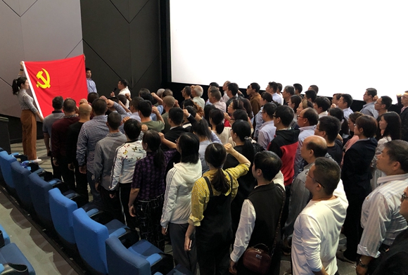 活動伊始,集團公司黨委書記、董事長黃偉君帶領大家重溫入黨誓詞,在莊嚴的黨旗下,每位黨員從心底里向黨旗宣誓,自豪感、使命感油然而生。宣誓完畢,大家入席觀看《黨章電視輔導教材》,電教片從黨章總述、共產(chǎn)黨員、黨的組織、黨的干部、黨的紀律五方面內(nèi)容展開。觀看電教片后,黨員們一起觀看影片《我和我的祖國》,影片由7個短片組成,每個短片故事完整獨立,共同禮贊偉大祖國。這部電影的主角是艱苦奮斗、平凡的中國人民。表達的是普通的個體和祖國大事件聯(lián)系在一起,看似遙遠實則密不可分的關系。新中國成立的升旗儀式、中國第一顆原子彈爆炸成功、女排奪冠、香港回歸、北京奧運會、神州十一號返回艙成功著陸、抗戰(zhàn)勝利70周年閱兵式,在祖國發(fā)展的大背景下,從不同的角度敘述著中國人民和祖國共追求,共成長,一幕幕場景感人至深。