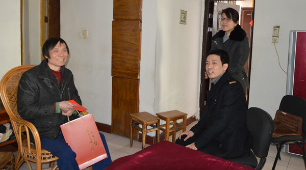 2月12日上午,集團(tuán)公司機(jī)關(guān)黨支部書記沈吉彪帶領(lǐng)支部委員到燈塔小區(qū)慰問結(jié)對(duì)幫扶的困難職工王華民,專程向王華民和其家人送上了組織的關(guān)愛和新春祝福。