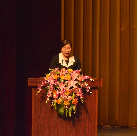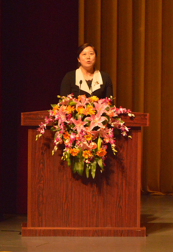 工會主席呂麗君作《模范司機吳斌》的報告