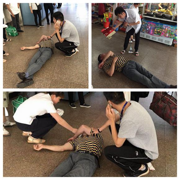 5月22日11時(shí)10分,東站的東大門進(jìn)口通道上,一名中年男子突然倒地,全身不停地抽搐,翻著白眼,嘴里不時(shí)往外冒出嘔吐物。這一幕恰巧被正在巡查場(chǎng)地的辦公室主任陳樂觀看到。陳樂觀趕緊上前查看,并急忙撥打120、110。聞?dòng)嵹s來的業(yè)務(wù)站副站長封慧麗和潘何豐也加入了幫忙的隊(duì)伍。