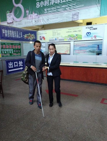 雖然眼睛看不見,但是應(yīng)安怡和江旭紅為自己忙前忙后的情形,盲人旅客心里特別的明白,他不停地向江旭紅說著謝謝,還不時地向邊上的旅客說:“麗水東站的工作人員服務(wù)真是太好了!”